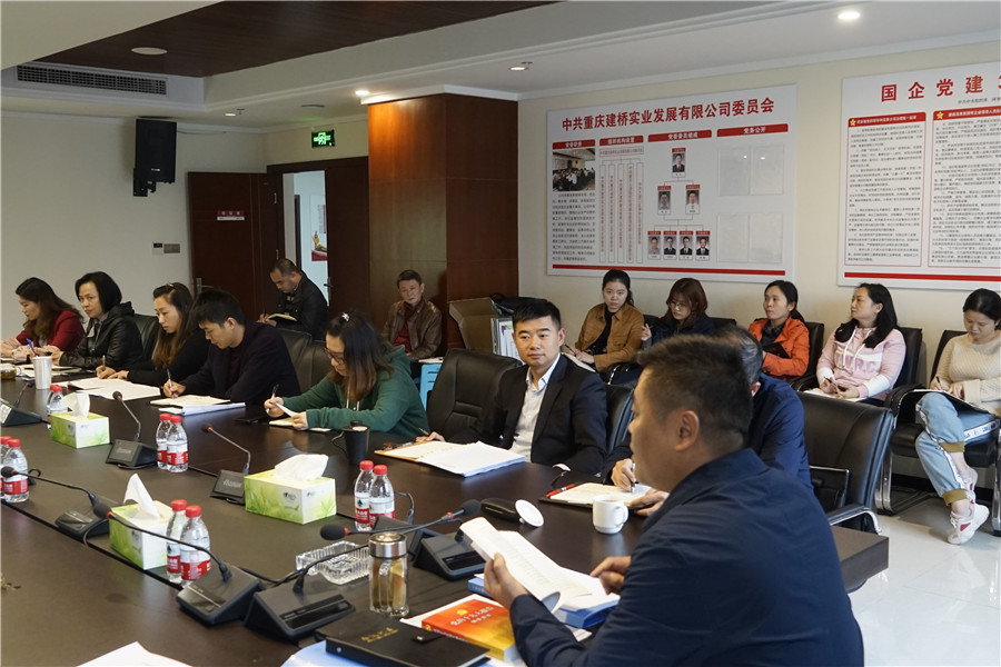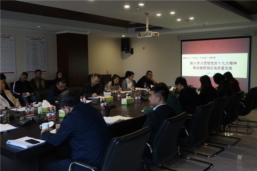 ????11月4日,建橋公司黨委書(shū)記袁利以“深入學(xué)習貫徹黨的十九大精神,推動(dòng)園區高質(zhì)量發(fā)展”為題,為公司全體黨員講主題教育專(zhuān)題黨課。區委巡回指導七組到會(huì )指導,公司全體黨員、中層干部參會(huì )。