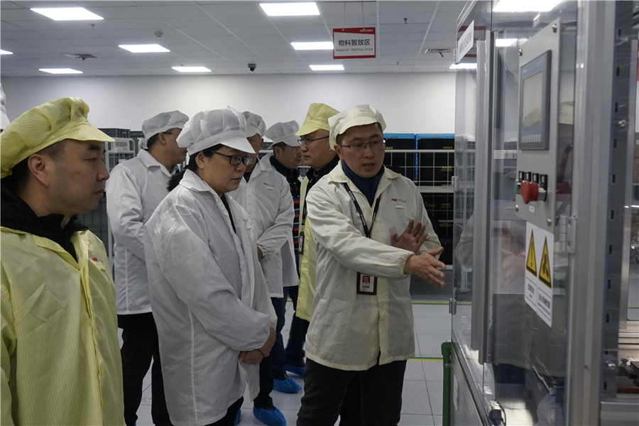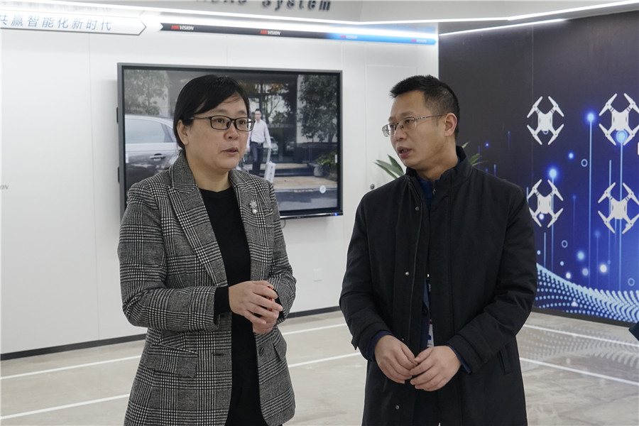 ????張國智一行深入查看了??低曋貞c科技園二期項目現場(chǎng)、視智慧展廳、智能化電裝工廠(chǎng)、網(wǎng)絡(luò )攝像機工廠(chǎng)等,聽(tīng)取了建橋園區整體工作匯報和??低暽a(chǎn)配套、項目建設、用工需求等情況介紹,對企業(yè)提出的生產(chǎn)用電、市場(chǎng)拓展、政策落地、人才引進(jìn)等事宜進(jìn)行了研究。