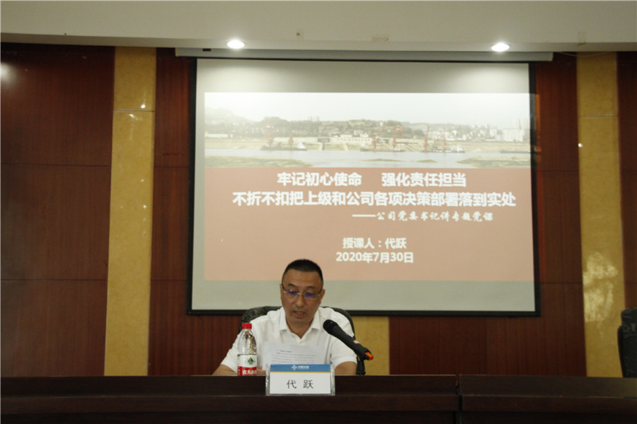 7月30日,重慶港口公司組織開(kāi)展黨委書(shū)記講黨課活動(dòng),公司黨委書(shū)記代躍以《牢記初心使命 強化責任擔當 不折不扣把上級和公司各項決策部署落到實(shí)處》為題,講授了一堂內容豐富的黨課。全體黨員、積極分子、中層干部近30人參加會(huì )議。