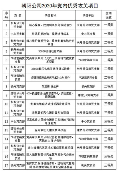 朝陽(yáng)氣體表彰2020年度黨內優(yōu)秀攻關(guān)項目