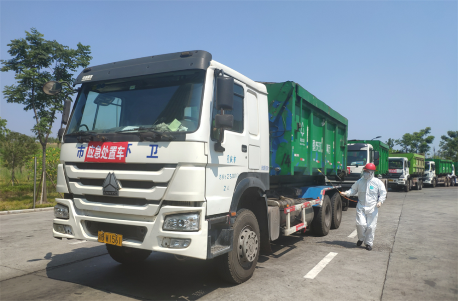 為避免可能的病毒擴散,三峰百果園公司還制訂了《新冠疫情防控工作方案》和《雙福蔬果專(zhuān)項處置方案》。入廠(chǎng)的應急處置車(chē)均引導至指定區域,由專(zhuān)人進(jìn)行入廠(chǎng)消殺;車(chē)輛進(jìn)入垃圾接收大廳后,于指定卸料門(mén)傾倒,進(jìn)行全程消殺。最終,這些傾倒的蔬果會(huì )第一時(shí)間送入爐內焚燒。因蔬果含水率高、熱值低,需要操作人員精心調整,既確保有效燃燼,又確保環(huán)保達標,徹底消除病毒傳播隱患。