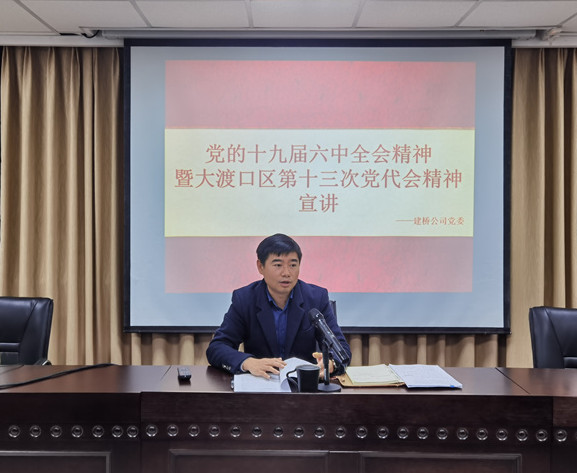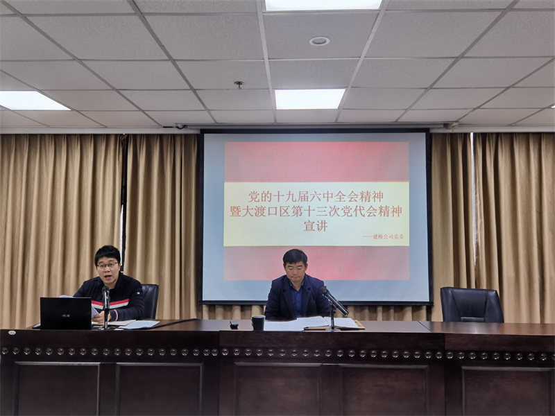 1月7日,建橋園區召開(kāi)黨的十九屆六中全會(huì )精神、大渡口區第十三次黨代會(huì )精神宣講會(huì )。公司領(lǐng)導班子、中層干部、全體黨員和職工參會(huì )。